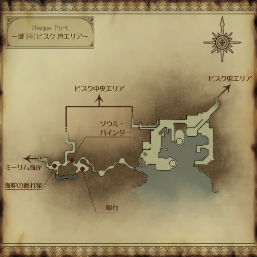 海蛇の隠れ家・シェルレランギルドなどがあるが、割と寒村した感じ。