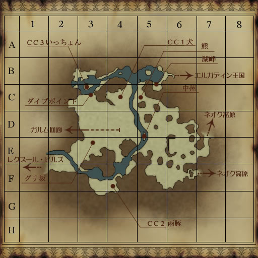 Mobは基本的に少ないものの、水中にいるウンディーネ、MAP左上にたむろってるサベージ一族など手ごわいMobもいる。